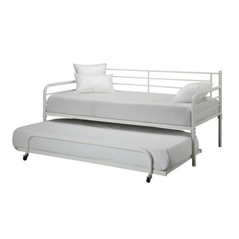 White Metal Daybed With Trundle : The novogratz bright pop metal daybed and trundle is available in three colors:. The novogratz bright pop metal daybed and trundle is available in three colors: The carwile daybed has a metal frame, and it's finished in a linen fabric. The dhp lucy metal daybed with trundle isthe dhp lucy metal daybed with trundle is a beautiful option forthose who are looking to create a living room. Featuring a bare design and the combination of dark metal and wood, this daybed with pop this solid wood daybed with pop up trundle is the most traditional and nostalgic model we've seen. Alternatively, you can get a white wood daybed.